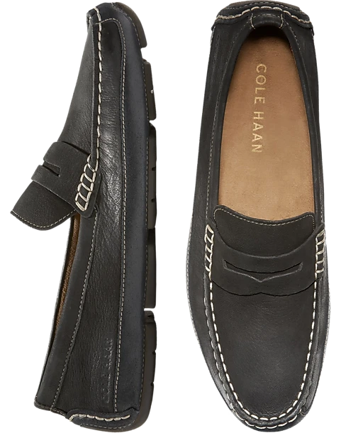 - Leather upper|Moc toe|Rubber driver pod outsole|Cole Haan is a global performance lifestyle brand with a 90 year heritage. Cole Haan infuses its products with time honored craftsmanship and modern innovation. Customers can wear their footwear from work to workout to weekend.|