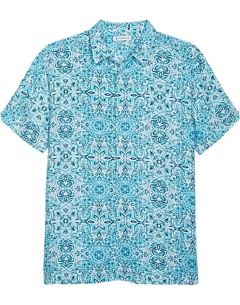 Cubavera Modern Fit Short Sleeve Sport Shirt, Light Blue Cuban Tile