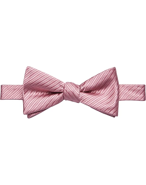 This stylish, easy-to-wear pre-tied bow tie features a classic stripe pattern that has a woven texture and a lustrous shade of pink.