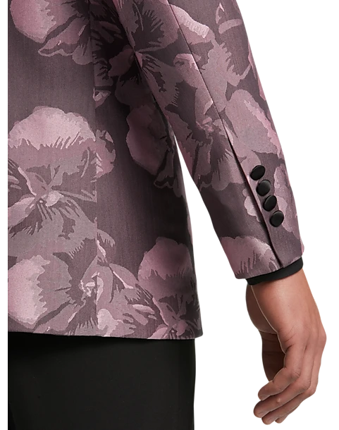 Richly hued and patterned this standout dinner jacket by Egara helps you create a modern formal look that expresses your unique style. This fine jacket is tailored with a satin peak lapel two satin covered buttons and an all-over floral pattern.