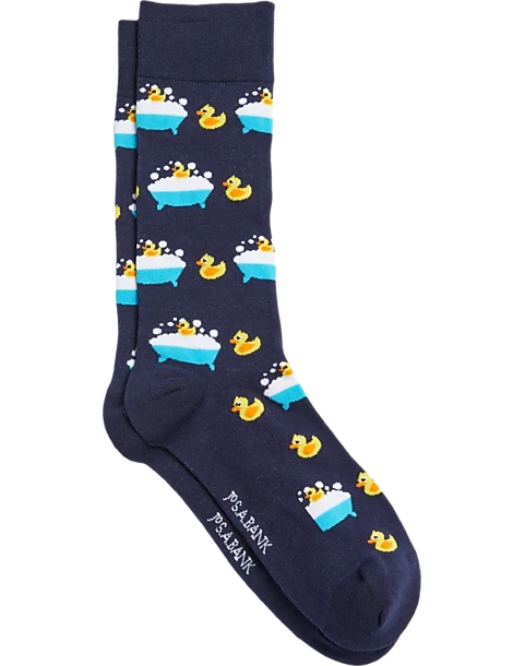 Add fun and fresh style to your look with these fun socks by Egara. Cute rubber ducks and bathtubs on a dark blue background will brighten your day.