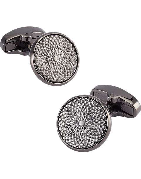 These polished gunmetal cufflinks will give the perfect finishing touch to your look. They feature a polished circle centerpiece with a textured pattern.