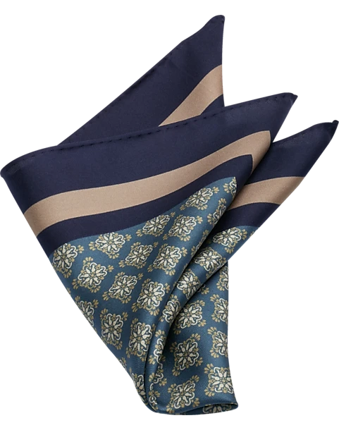 Add a dash of color and pattern to your look with this pocket square from Joseph Abboud. Cut from pure silk, it features a medallion pattern framed with bold bands of color.