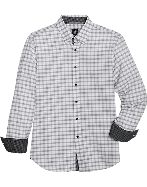 Michael Strahan Four-Way Stretch Modern Fit Sport Shirt, White Windowpane Plaid