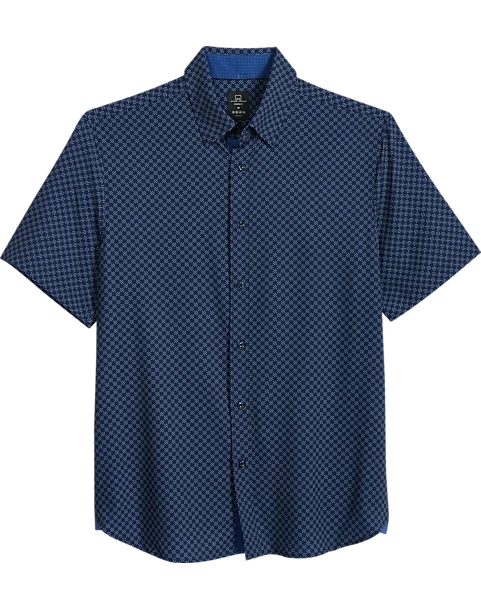 Michael Strahan Modern Fit 4-Way Stretch Short Sleeve Sport Shirt, Blue Geo Grid
