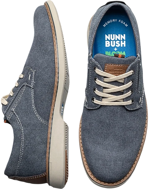 Style and sustainability come together with these refreshing Oxfords from Nunn Bush made with a soft cotton canvas upper and flexible rubber sole. These innovative lace ups have a removable, molded EVA footbed comprised of memory foam and the eco-friendly BLOOM insole made from algae. And the defender repellant powered by Scotchgardâ„¢ enhances its water resistance and stain protection for effortless wear and care.