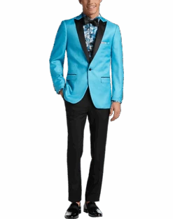 Make a bold, sophisticated statement with this finely crafted dinner jacket by Paisley & Gray. Featuring a vibrant hue paired with a black satin peak lapel, it is tailored with a streamlined Slim Fit to offer a sleek, modern look for your next special occasion.