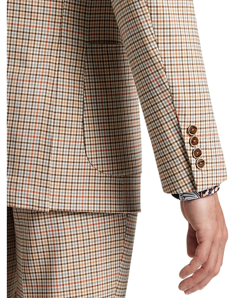 - 64% polyester 34% rayon 2% spandex|Double breasted|Peak lapel|Side vents|Coordinating pieces sold separately|Slim Fit|Paisley & Gray|