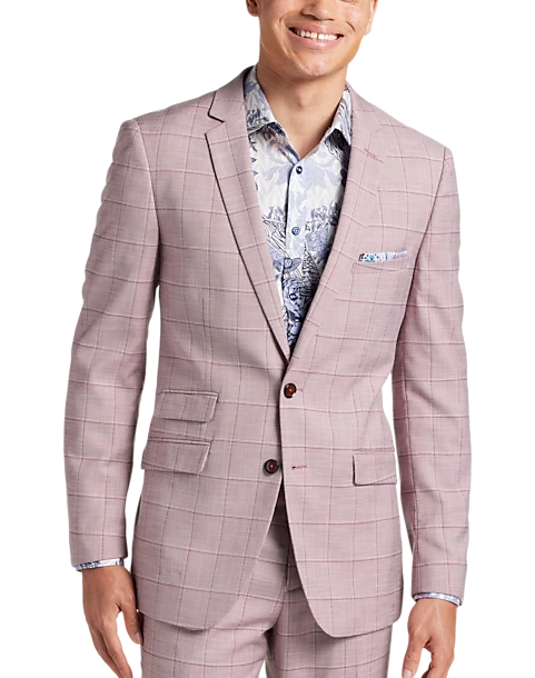 - 74% polyester 24% rayon 2% spandex|Two button|Notch lapel|Side vents|Coordinating pieces sold separately|Slim Fit|Paisley & Gray|