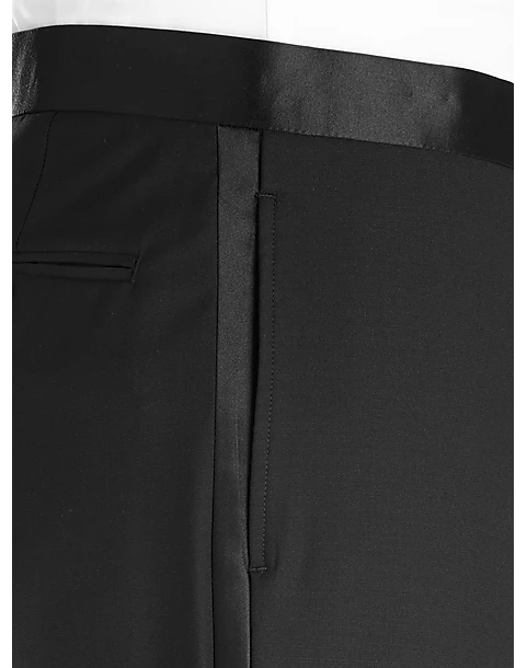 Make a lasting impression with these refined suit separates tuxedo pants by Pronto Uomo Platinum with satin detailing and a trim, Modern Fit. With suit separates you can choose coat, pant, and/or vest sizes separately for an ideal fit.